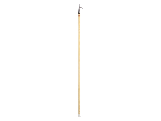 Een bootshaak in gelamineerd pine met een messing verchroomde haak. Afgewerkt met een speciale vernis. Knop bestaat uit weerbestendige kunststof.