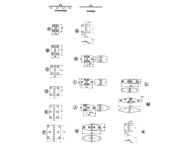 Uit RVS 304 plaatmateriaal. Voorzien van 6 mm schroefgat. Scharnieren zijn 1.2 mm dik.