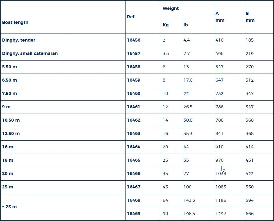 Britany® anker Graaft zich onmiddellijk in : Om mogelijke vervuiling te voorkomen, heeft het Britany anker geen groot ankerkruis. Teneinde vastlopen door steentjes onmogelijk te maken, heeft het Britany anker een schachtscharnierpunt onder opening. Scherpe punten : verzekeren snel ingraven in de hardste zeebodems. Geodynamische vloeien, voor perfecte houdkracht. Hoogwaardig stalen schacht, uit één stuk gesmeed : ook bestand tegen een sterke laterale trekkracht. Smal ankerkruis, zo gemaakt dat de achterkant van het anker opgetild wordt, waardoor de vloeien zich meteen ingraven.