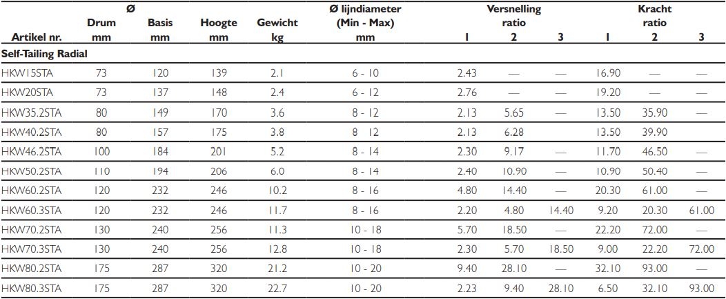 De aluminium Radiaal lieren zijn ontworpen voor zeilers die een laag gewicht, hoge trekkracht en voldoende power eisen van een lier. Het oppervlak van de trommel heeft voor elke maat lier een specifiek daarvoor ontwikkeld 3D profiel. Dat wordt vervolgens diagonaal over de trommel aangebracht. Dit profiel zorgt voor maximale grip en vermindert slijtage van het touwwerk. Bij het uitvieren van de lijn hebben andere lieren de neiging om de slagen van de lijn om de liertrommel omhoog te duwen. Door het radiale profiel op de drum werkt de Radiaal liertrommel als een schroef bij het uitvieren en wordt de lijn naar beneden geleid. Daar waar je de meeste controle hebt op de spanning van de lijn. Aluminium trommels en duurzame composiet self-tailers verminderen het gewicht met wel 25% tot 50% ten opzichte van de klassieke lieren. De composiet naald-lagers verminderen frictie onder belasting en vereisen geen smering. De krachtdragende tandwielen en pennen zijn gemaakt uit 17-4PH RVS voor kracht, prestatie en duurzaamheid. Small-boat lieren zijn te verkrijgen met één versnelling. De self-tailer modellen vanaf maat 60 en groter zijn er met twee of drie versnellingen.