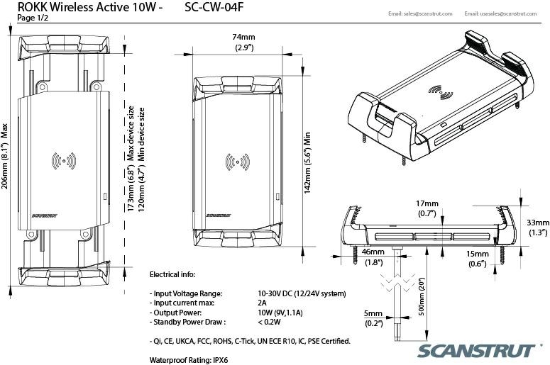 ROKK Wireless - Active. 10W Waterproof wireless phone charging mount 12/24V