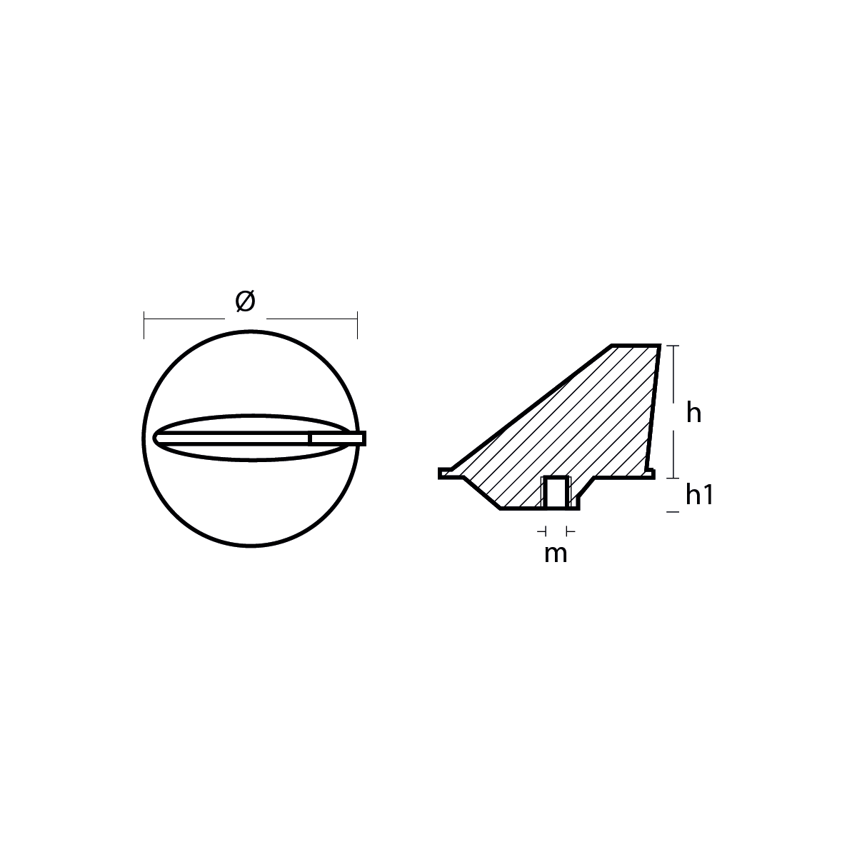 Magnesiumanode zoals YamahaMariner 4060 HP after/dopo 1993 Ook verkrijgbaar onder nummer: 00800 01411 Afmetingen: kg0.12 lbs0.25 h61mm h119mm diam91mm m7/16UNC