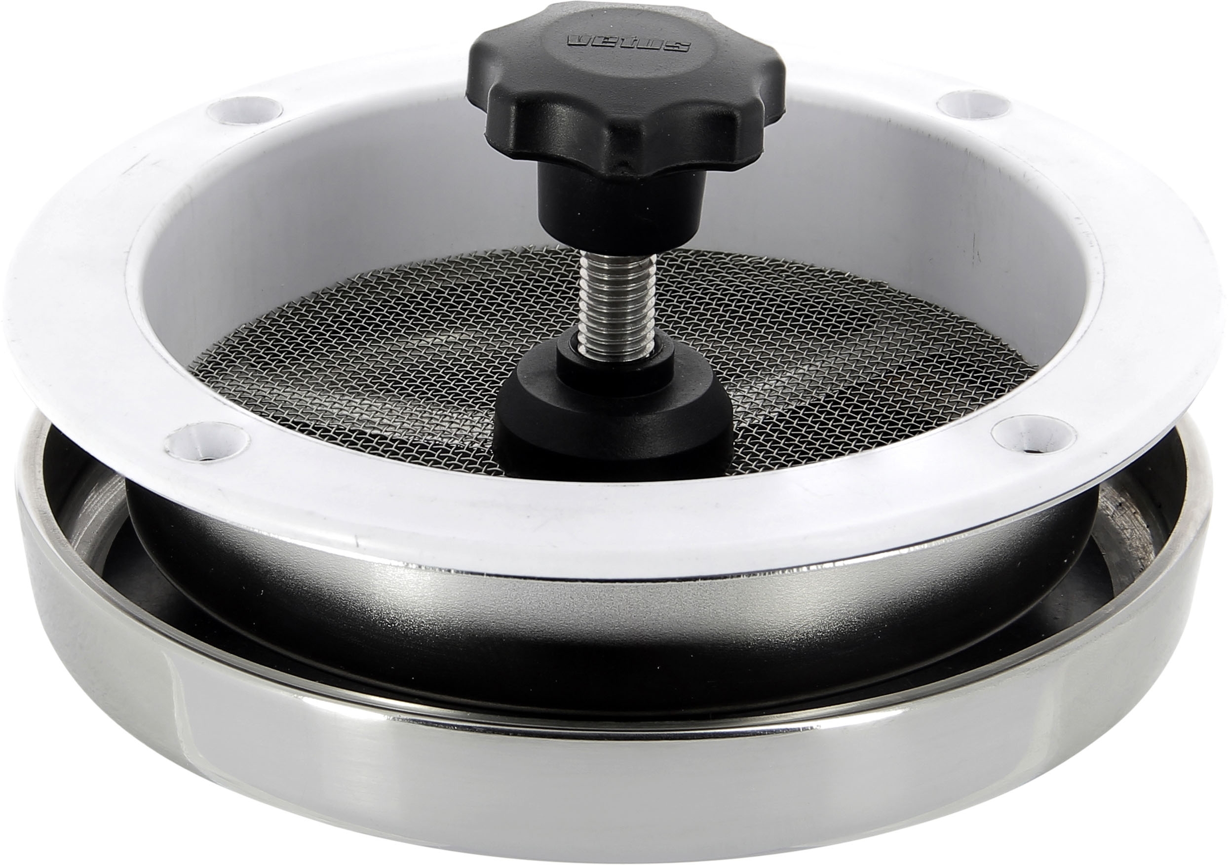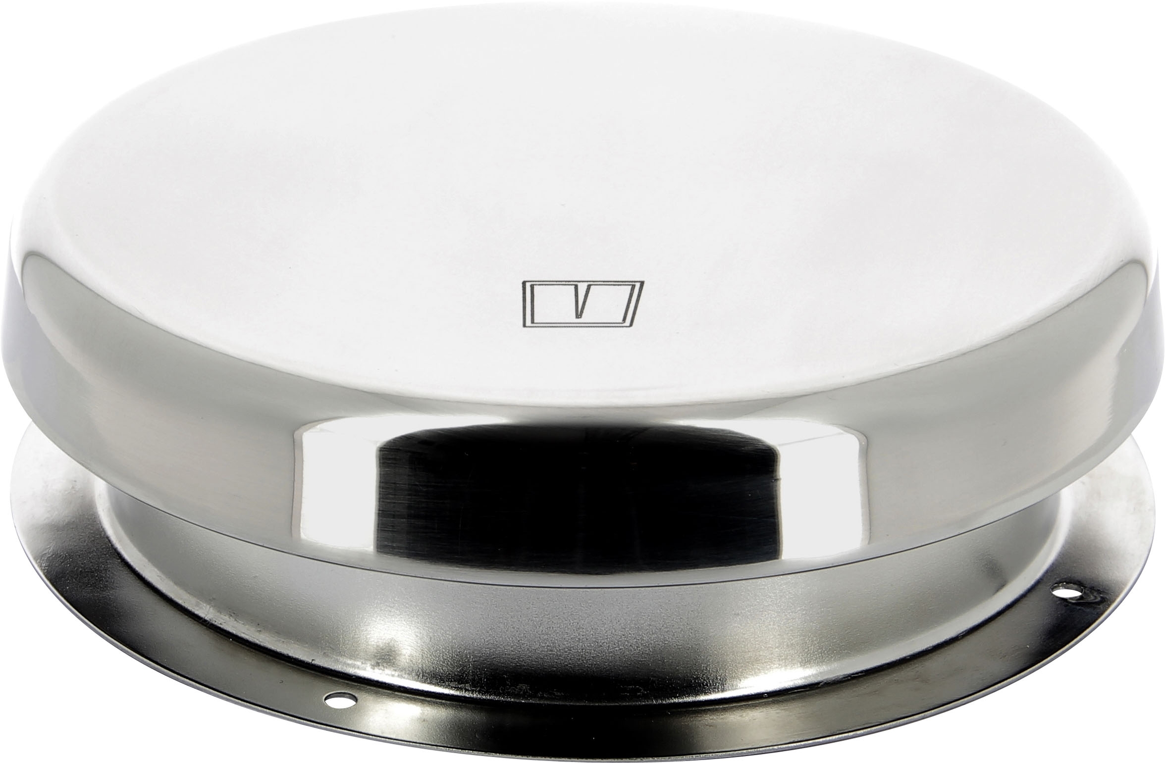 Roestvast stalen (AISI 316) paddestoelventilator ATHOS1, hoogglans gepolijst, inclusief muggenhor en kunststof afwerkring. Netto luchtdoorlaat 45 cm².