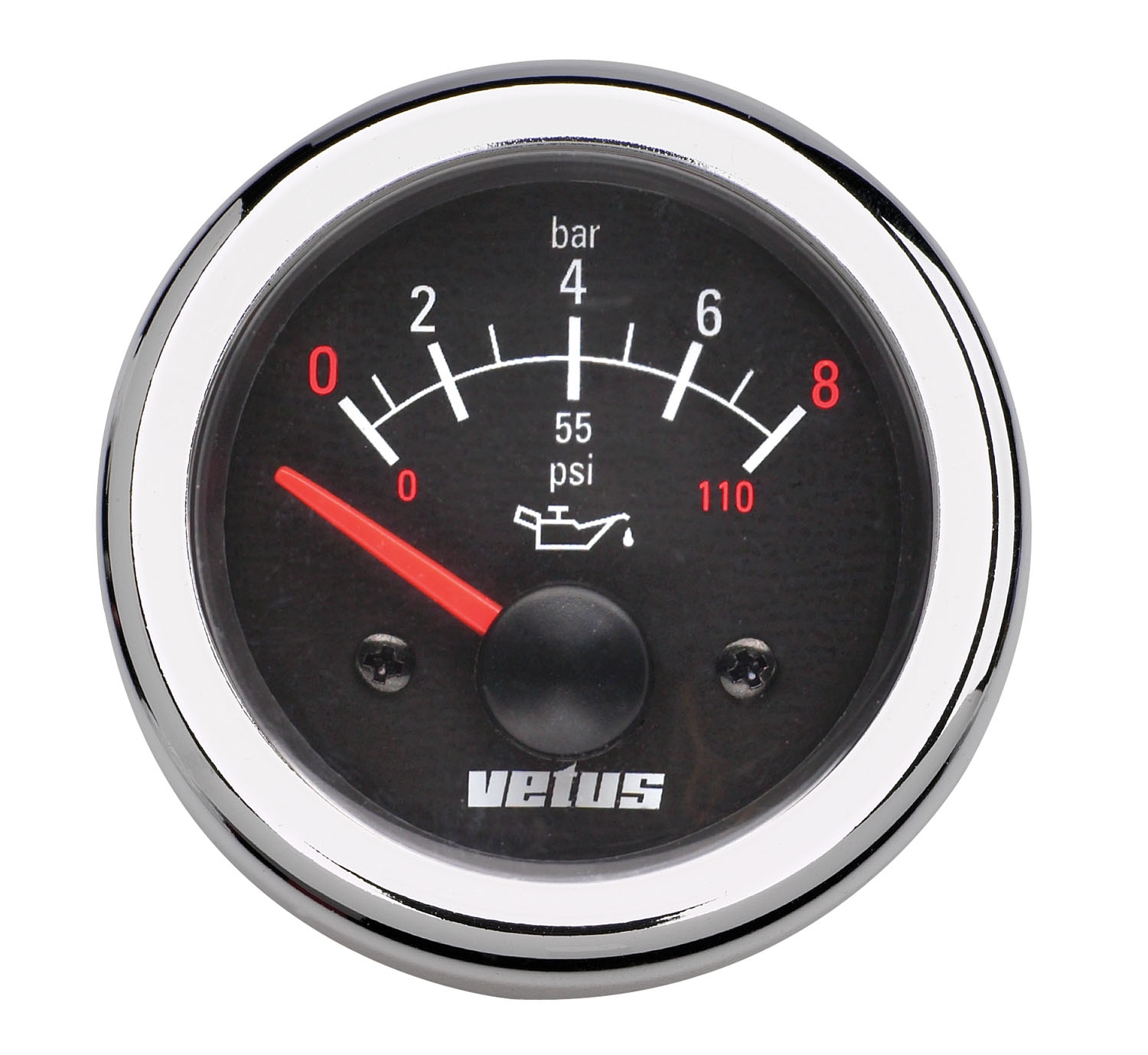 Schaalbereik 0-8 kg/cm² en 0-110 p.s.i. Grote nauwkeurigheid, betrouwbaar, dubbel glas. Met zwarte en verchroomde afwerkrand geleverd. Excl. sensor.