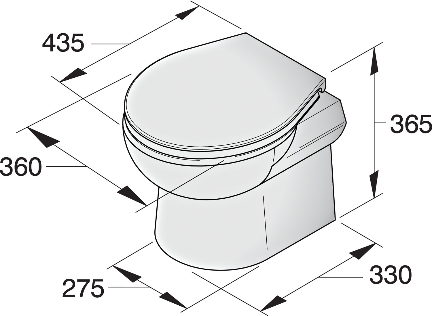 Dit is een van de kleinste en lichtste elektrische toiletten op de markt. Een solide, staand toilet met hoge kwaliteiten en een porseleinen pot met comfortabele bril en deksel.